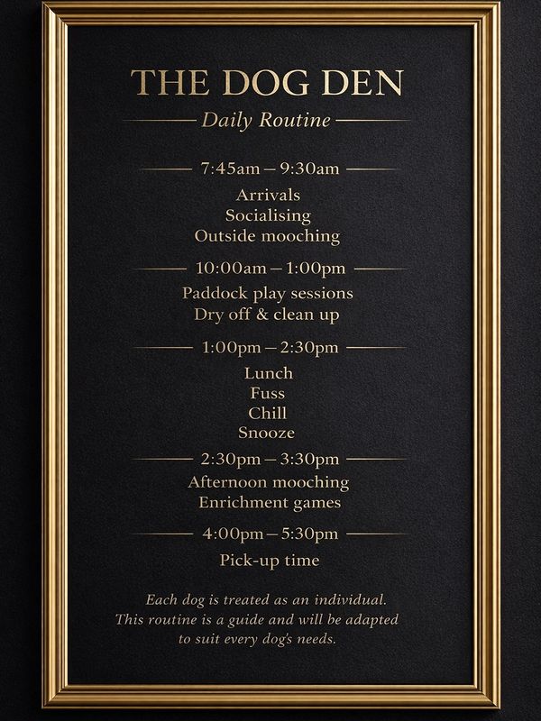 At the family run Dog Den, we are dedicated to providing a safe and loving environment for your furry friends. Our mission is to ensure every dog feels at home while enjoying a fun-filled day of play and socialisation. Plenty of rest and enrichment activities will ensure your doggo has THE best day!